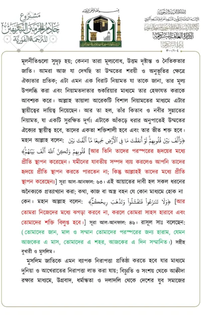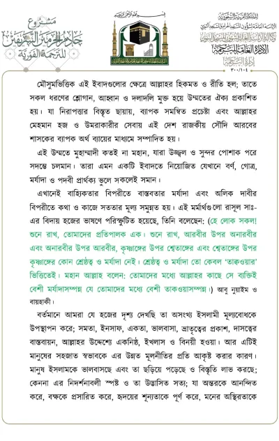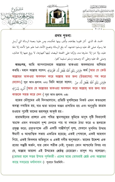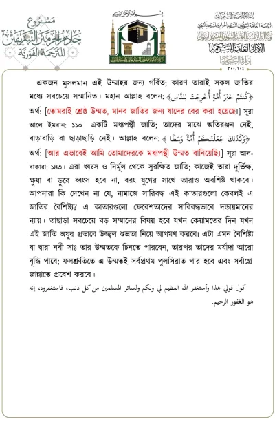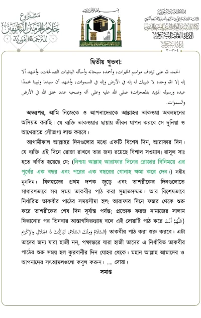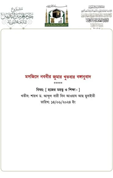 মসজিদে নববীতে প্রদত্ত আজকের জুমার খুতবার বঙ্গানুবাদ। তারিখ: ১৪/০৬/২০২৪ ইং