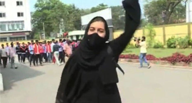ভারতের কর্নাটক রাজ্যে হিজাব পরে কলেজে যাওয়ার জন্য হিন্দু উগ্রবাদীদের হাতে হেনস্তার শিকার মুসলিম ছাত্রী মুশকান খান বলেছেন, তিনি হিজাব পরেছেন বলে তারা জয় শ্রী রাম স্লোগান দিয়েছে। তখন আমিও আল্লাহু আকবার ধ্বনি দিয়েছি। আমি হিজাব পরার অধিকার রক্ষার লড়াই অব্যাহত রাখব।
