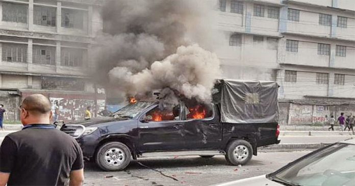 বিক্ষুব্ধ শ্রমিকরা সড়কে নেমে টায়ার ও কাঠের গুঁড়ি দিয়ে আগুন ধরিয়ে বিক্ষোভ দেখাতে থাকে। পরে পুলিশ তাদের সড়ক থেকে তুলে দিতে গেলে সংঘর্ষ শুরু হয়। পরিস্থিতি নিয়ন্ত্রণ আনতে টিয়ারসেল ও রাবার বুলেট ছুড়েছে পুলিশ। তখন শ্রমিকরা ছত্রভঙ্গ হয় যায়। পরে বেলা ১০টার দিকে আবারও সড়ক অবরোধ করে পুলিশকে লক্ষ্য করে ইটপাটকেল ছুড়তে থাকে বিক্ষোভকারীরা।
