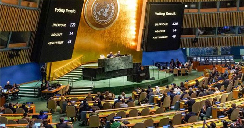 জাতিসঙ্ঘ সাধারণ পরিষদে গাজা উপত্যকায় যুদ্ধবিরতি পাস হয়েছে। মঙ্গলবার রাতে ১৫৩-১০ ভোটে প্রস্তাবটি পাস হয়। ২৩টি দেশ ভোট দানে বিরত থাকে। বিরুদ্ধে যে ১০টি দেশ ভোট দিয়েছে, তাদের অন্যতম হচ্ছে যুক্তরাষ্ট্র ও ইসরাইল। যুক্তরাষ্ট্র গত সপ্তাহে জাতিসঙ্ঘ নিরাপত্তা পরিষদে যুদ্ধবিরতি প্রস্তাবেও ভেটো দিয়েছিল।