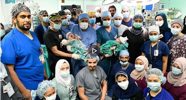 ২৮ জন বিশেষজ্ঞ চিকিৎসকের সমন্বয়ে গঠিত মেডিক্যাল টিমের সদস্যরা সৌদি আরবের রাজধানী রিয়াদের একটি হাসপাতালে দীর্ঘ পাঁচ ঘণ্টা অস্ত্রোপচারের পর জোড়া লাগা দুই ইয়েমেনি শিশুকে সফলভাবে পৃথক করতে সক্ষম হয়েছেন।