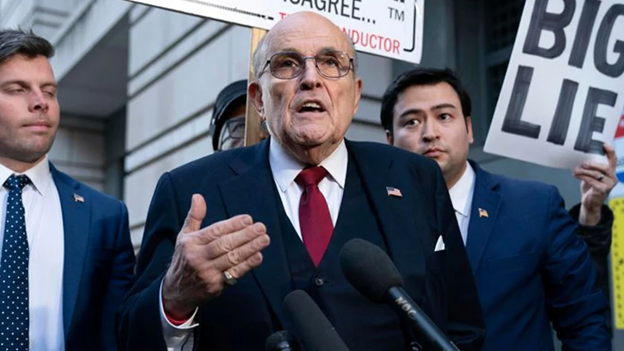 জানা যায়, নির্বাচনের ফলাফলকে পালটে দেওয়ার জন্য ট্রাম্পের আইনি প্রচেষ্টার নেতৃত্ব দিয়েছিলেন জিউলিয়ানি। তিনি দুই নির্বাচন কর্মী রুবি ফ্রিম্যান এবং তার মেয়ে ওয়ান্ড্রিয়া শায়ে মসের একটি ভিডিও পোস্ট করে তাদের বিরুদ্ধে ব্যালট-গণনার সময় জালিয়াতির সঙ্গে জড়িত থাকার মিথ্যা অভিযোগ আনেন এবং তাদের সম্পর্কে আরো অনেক ভিত্তিহীন দাবিও করেন। তার এ দাবি আদালতে মিথ্যা প্রমাণিত হলে অপবাদ দিয়ে মানহানি করার দায়ে তাকে ১৪ কোটি ৮০ লাখ ডলার ক্ষতিপূরণ দেওয়ার আদেশ দেয় আট জনের এক ফেডারেল জুরি। এর ঠিক কয়েক দিন পরই নিউ ইয়র্কের ইউএস ব্যাংকরাপ্সি কোর্টে দেউলিয়া হওয়ার আবেদন করেন জিউলিয়ানি।