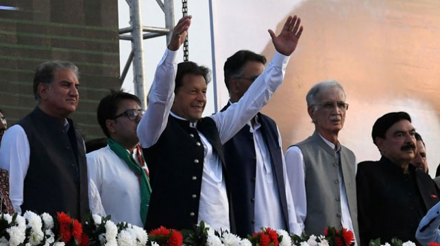 রোববার ইসলামাবাদের প্যারেড গ্রাউন্ডে তার দল পাকিস্তান তেহরিক-ই-ইনসাফের (পিটিআই) লক্ষাধিক কর্মী-সমর্থকের উদ্দেশ্যে দেওয়া ভাষণে এই হুঙ্কার দিয়েছেন তিনি। ভাষণের শুরুতে ইমরান খান বলেন, `প্রথমে আমি দেশের জনগণকে ধন্যবাদ জানাই। আমার আহ্বানে সাড়া দিয়ে আপনারা দেশের প্রত্যেক প্রান্ত থেকে যেভাবে সমাগত হয়েছেন, সেজন্য আমার অন্তরের অন্তস্থল থেকে আপনাদের ধন্যবাদ জানাই।’