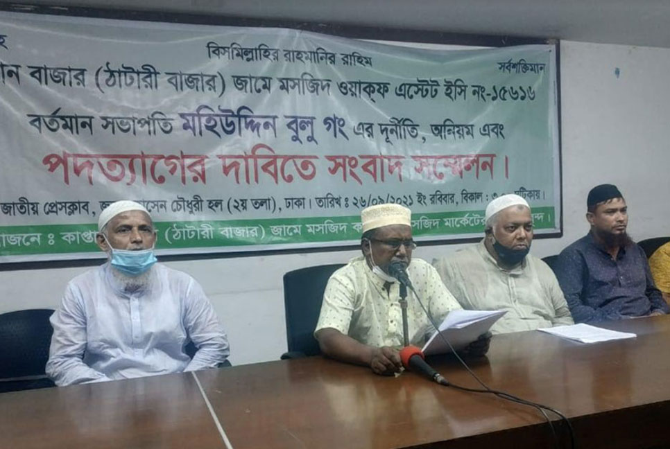 সংবাদ সম্মেলনে তিনি বলেন, কাপ্তান বাজারের ঐতিহ্যবাহী জামে মসজিদের কার্যক্রম সুন্দরভাবে সুনামের সঙ্গে পরিচালিত হয়ে আসছে। একটি সংঘবদ্ধ অসাধু চক্র মসজিদের অর্থ আত্মসাতের লক্ষ্যে মসজিদ কমিটির পদ দখলের অসৎ উদ্দেশ্যে লিপ্ত হয়। ২০১৯ সালে হঠাৎ করে মহিউদ্দিন বুলু গং নিজেদের মসজিদ কমিটির লোক বলে দাবি করেন।