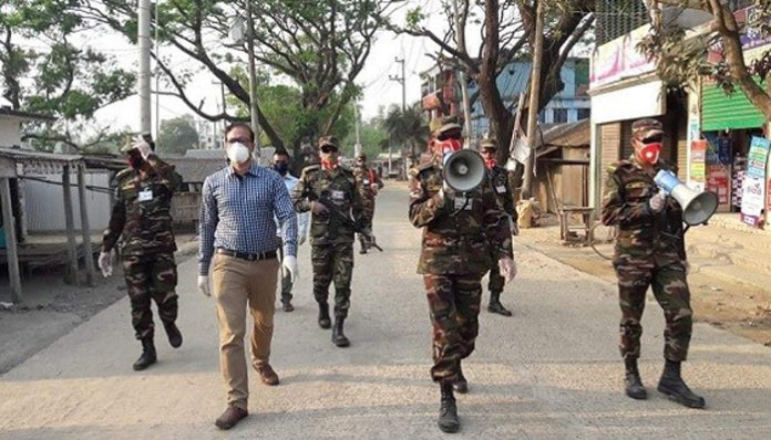সারাদেশে সোমবার থেকে এক সপ্তাহের জন্য কড়াকড়ি কঠোর লকডাউন দেবে সরকার। মানুষকে স্বাস্থ্যবিধি মানাতে কাজ করবে পুলিশ, বিজিবি। একই সঙ্গে মোতায়েন থাকতে পারে সেনাবাহিনীও।