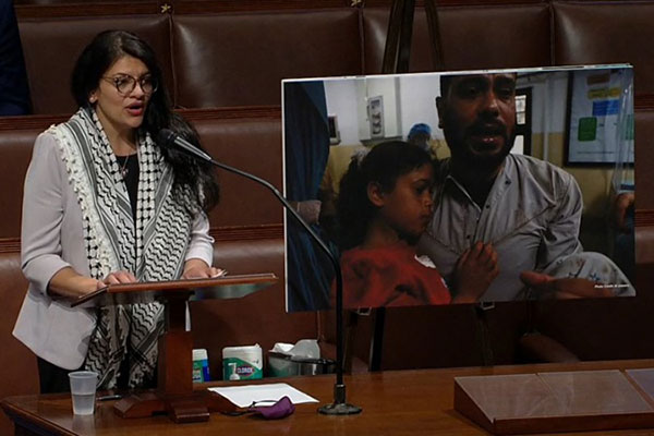 মার্কিন কংগ্রেসে একমাত্র ফিলিস্তিনি-আমেরিকান সদস্য রাশিদা তৈয়ব বৃহস্পতিবার প্রতিনিধি পরিষদে ফ্লোর নিয়ে নিজ দল থেকে নির্বাচিত প্রেসিডেন্ট জো বাইডেন এবং অন্য নেতাদের তীব্র সমালোচনা করেন। ফিলিস্তিন ইস্যুতে আমেরিকার একচোখা নীতির সমালোচনা করে তিনি বলেন, প্রেসিডেন্ট বাইডেন, পররাষ্ট্রমন্ত্রী ব্লিঙ্কেন, জেনারেল অস্টিন ও উভয় দলের অন্য নেতাদের বিবৃতিগুলো পড়লে মনেই হবে না যে, ফিলিস্তিনিদের অস্তিত্ব আছে।