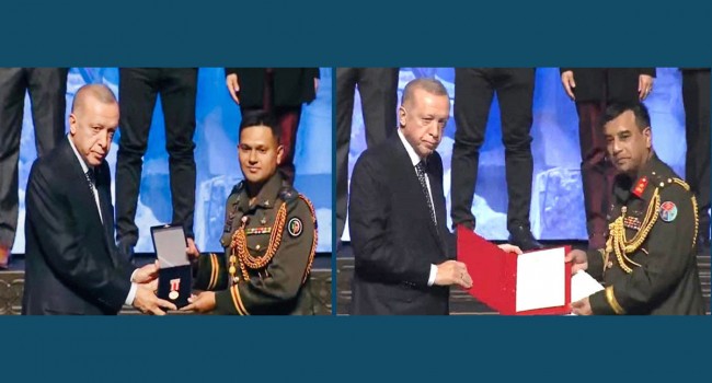 আইএসপিআর সূত্রে জানা যায়, মঙ্গলবার তুরস্কের প্রেসিডেন্ট রজর তৈয়ব এরদোয়ানের হাত থেকে এই বিশেষ সম্মাননা গ্রহণ করেন তুরস্কে নিযুক্ত বাংলাদেশ সেনাবাহিনীর ডিফেন্স অ্যাটাশে ব্রিগেডিয়ার জেনারেল মোহাম্মাদ রাশেদ ইকবাল ও উদ্ধারকারী দলের প্রধান লেফটেন্যান্ট কর্নেল মো: রুহুল আমিন।