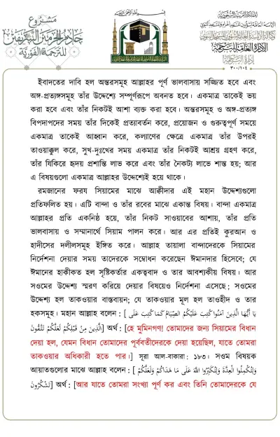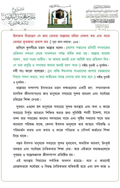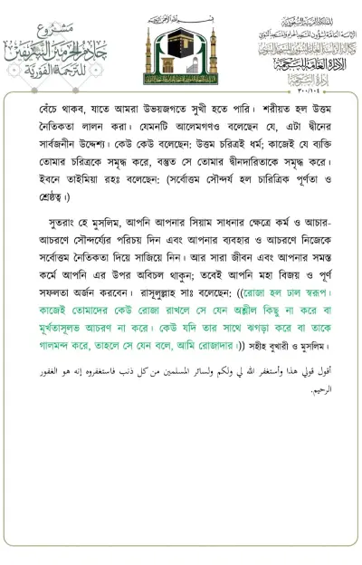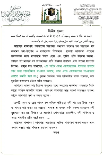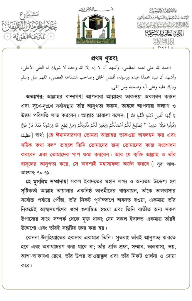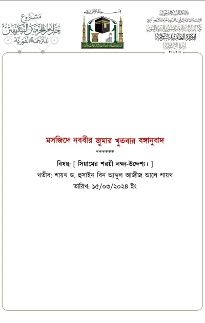 মসজিদে নববীতে প্রদত্ত জুমার খুতবার বঙ্গানুবাদ, তারিখ: ১৫/০৩/২০২৪ ইং
