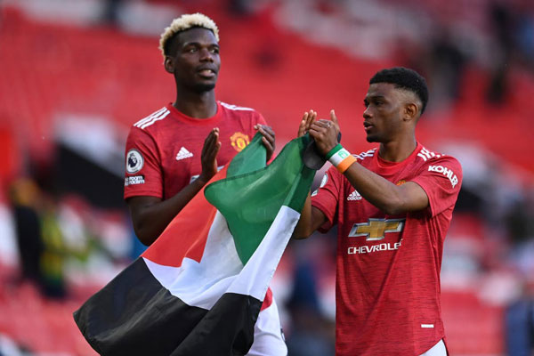চেলসির বিপক্ষে গত সপ্তাহে এফএ কাপ শিরোপা জয়ের পর মাঠে ফিলিস্তিনের পতাকা উড়িয়ে ইসরাইলের বর্বর হামলার প্রতিবাদ জানিয়েছিলেন লেস্টার সিটির বাংলাদেশি বংশোদ্ভূত তারকা হামজা চৌধুরী। এবার খেলা শেষে মাঠে ফিলিস্তিনের পতাকা ওড়ালেন ম্যানচেস্টার ইউনাইটেডের তারকা ফুটবলার পল পগবা ও আমাদ দায়ালো।