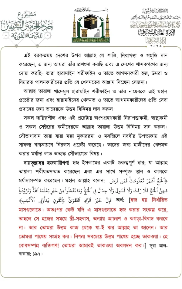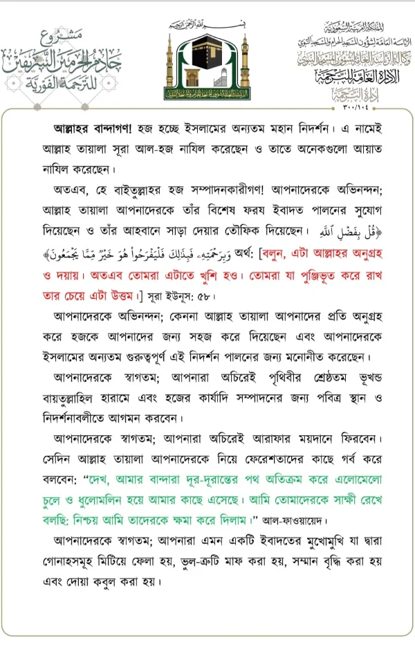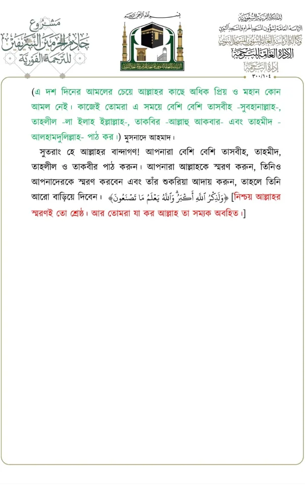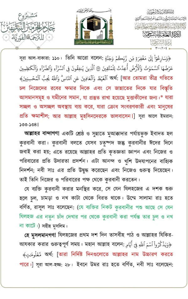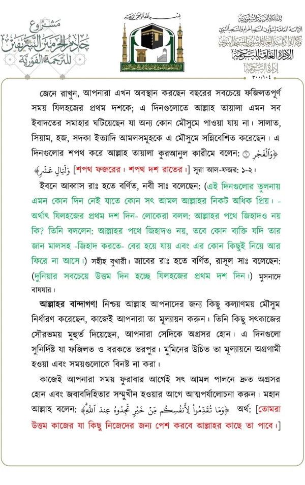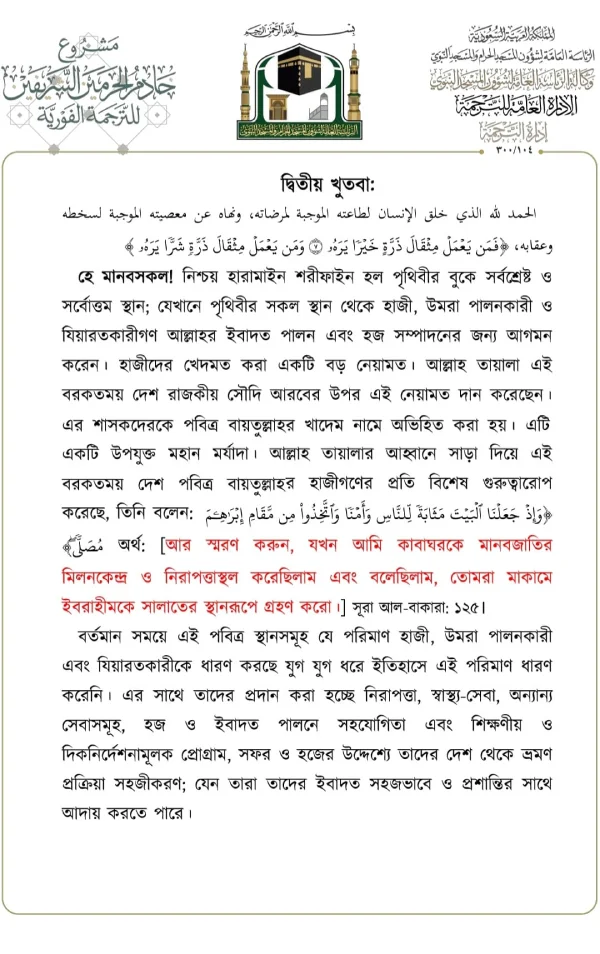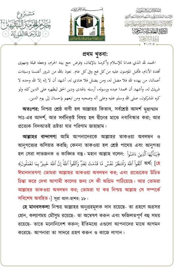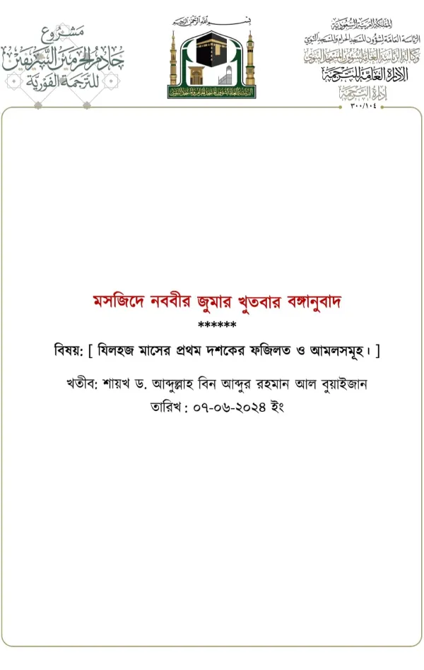 মসজিদে নববীতে প্রদত্ত আজকের জুমার খুতবার বঙ্গানুবাদ। তারিখ: ০৭/০৬/২০২৪ ইং