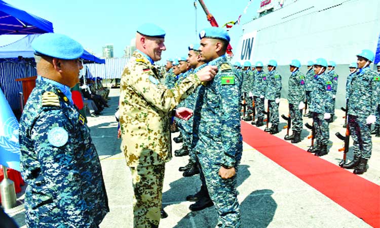 লেবাননের বৈরুতে জাতিসংঘ শান্তিরক্ষা মিশনে নিয়োজিত বাংলাদেশ নৌবাহিনীর ১১০ সদস্য শান্তিরক্ষা মেডেলে ভূষিত হয়েছেন।