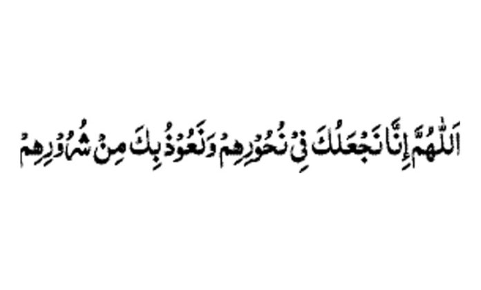 উচ্চারণ : আল্লাহুম্মা ইন্না নাজআলুকা ফি নুহুরিহিম ওয়া নাউজুবিকা মিন শুরুরিহিম