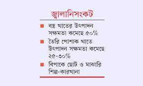জানতে চাইলে বাংলাদেশ টেক্সটাইল মিলস অ্যাসোসিয়েশনের (বিটিএমএ) সভাপতি মোহাম্মদ আলী খোকন গতকাল কালের কণ্ঠকে বলেন, ‘গ্যাস ও বিদ্যুৎ সংকটে দেশের বস্ত্র খাতের কারখানাগুলোর উৎপাদন সক্ষমতা অর্ধেকে নেমেছে।