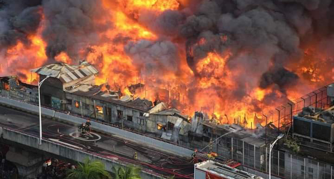 রাজধানীর বঙ্গবাজারে আগুন নিয়ন্ত্রণে কাজ করছে ফায়ার সার্ভিসের ৫১টি ইউনিট। তিন ঘণ্টার বেশি সময় ধরে আগুন নিয়ন্ত্রণের চেষ্টা চলছে। সুষ্ঠুভাবে এই কাজ পরিচালনার জন্য হানিফ ফ্লাইওভারসহ আশপাশের সব রাস্তায় যান চলাচল বন্ধ করে দেয়া হয়েছে।