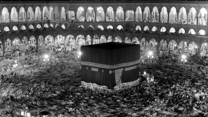 ১৯৭১ সালে তোলা টাইম এক্সপোজার ছবিতে মক্কায় তাওয়াফকারীদের দেখা যাচ্ছে। সূত্র: গেটি ইমেজেস