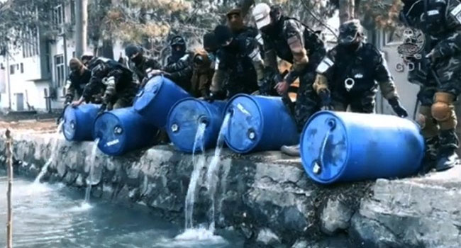 বার্তা সংস্থা এএফপি জানায়, একদল গোয়েন্দা কর্মকর্তা রাজধানী কাবুল থেকে মদের ড্রামগুলো জব্দ করে সেখানের একটি খালে ফেলে দেয়।